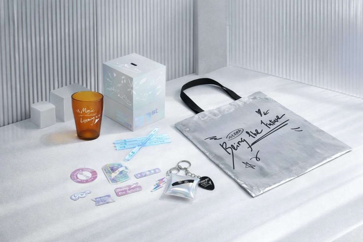 本屆 KKBOX 風雲榜確定採以「實名制」形式入場,首波限量「未來禮包」將於4月15日中午12點於官網開賣。內容包含銀色時空手提袋、幸運盲盒籤筒玻璃杯、炫光紀念貼紙組、空氣感 NFC 吊飾,以 及KKBOX 365天個人年方案。凡購買禮包即贈演唱會門票一張(每人限購2組,售完為止)