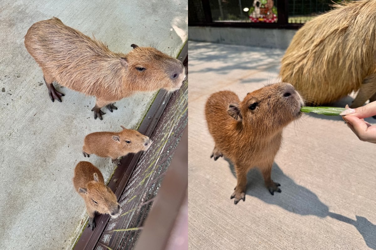 園區內除了梅花鹿外,今年更迎來「水豚寶寶」新成員們,目前都還不到一歲,迷你版可愛再加倍,還可以餵食圈內提供的牧草近距離互動。最讓妞編輯驚訝的是,這裡的水豚還會聽「握手」指令,只要以牧草誘惑,就能讓他們伸出手手和你來個親密接觸,簡直不要太可愛。