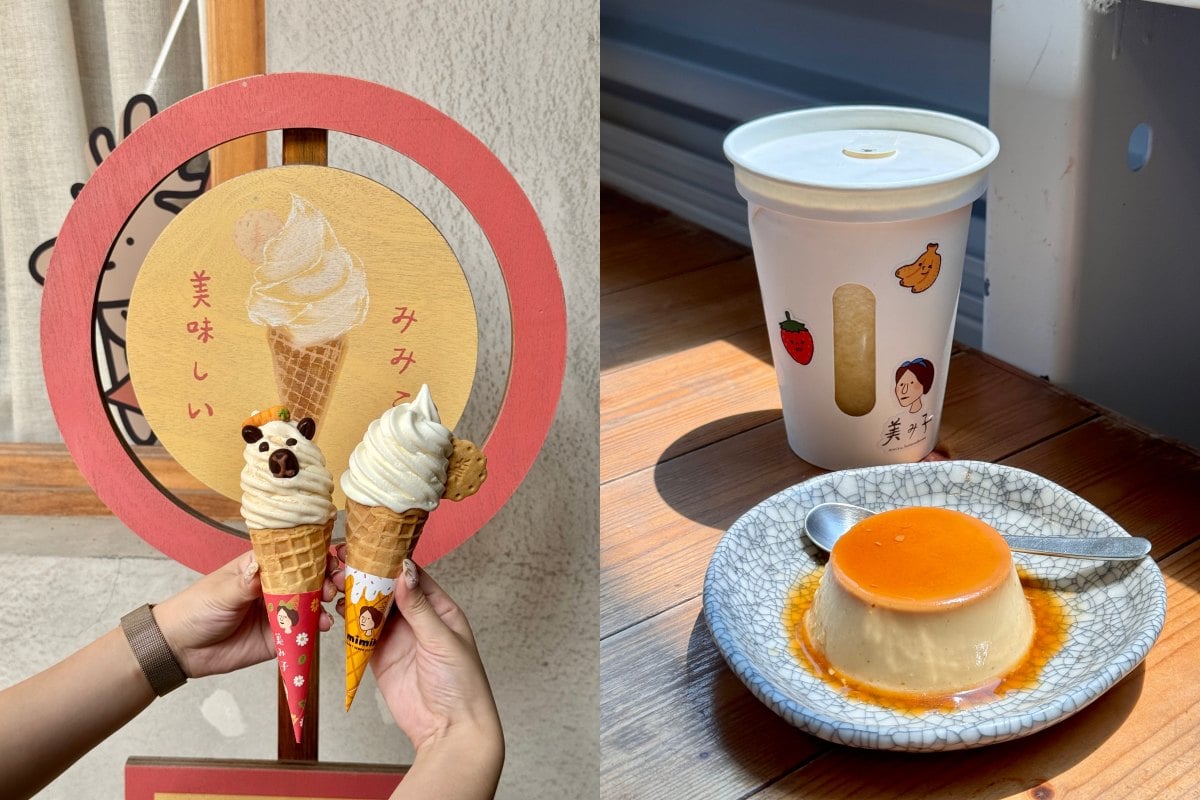 餵食完梅花鹿、和水豚互動後,還可以到園區內的美美子咖啡廳,品嚐美味布丁、喝杯飲料吹冷氣休息消消暑。這裡還有人氣必點的卡比巴拉霜淇淋,不只外型超可愛,黑糖口味大小朋友都超愛。