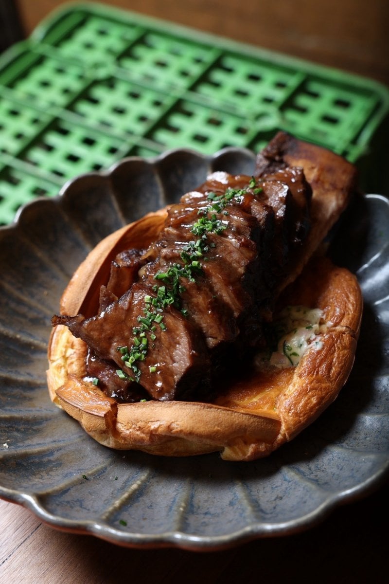 倉廩的經典「倉餅」也有新成員加入!最頂級的「慢烤牛小排倉餅」,藉由主廚在米其林星級牛排餐廳的熟練經驗,將帶骨牛小排以味噌牛肉醬汁長時間燉煮,肉質軟嫩、鹹香入味,筋膜部分更是柔滑到令人驚豔。搭配外脆Q彈的倉餅,口感風味都超棒!