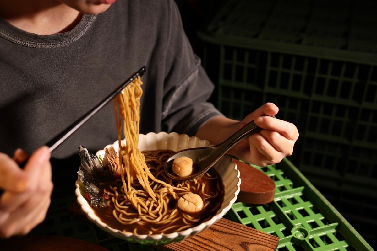 身為小吃店,麵食當然是重點!這次主打的「蝦湯海鮮麵」,用烤過的蝦殼加入葡萄酒、蔬菜熬製湯頭,湯頭清爽不死鹹,搭配彈牙鮮蝦和貝類,在悶熱的夏天也能舒服享用!