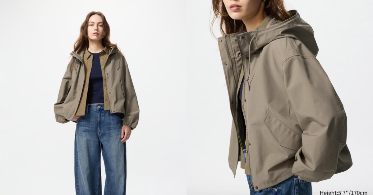 日本品牌「UNIQLO」家的這款小資女必收,結合工裝風格的連帽外套價格不到NT.1500!!!棉質混紡表布材質的表面經過防潑水加工,通勤遇到小雨滴滴答答,披上一件、帽子一戴完全不用擔心淋濕,同時結合下擺調節帶、泡泡袖口設計,實穿又好看,一共有咖啡、卡其、奶油米、黑色4色可選擇喔~