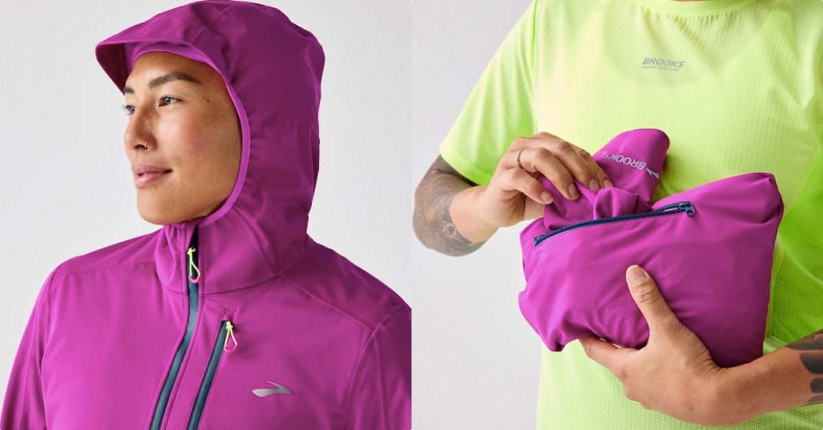 機車族請收這件!BROOKS的「高峰防水外套」擁有GO2 Repel™高效防風防水面料,提供防水透濕系數18K/16K等級的高度防水保護,帽沿及下擺細節阻擋風雨侵入,不只透氣性、舒適性、防水力優秀兼顧,外套還能輕便收納進「胸前口袋」,亮粉色配色即使在夜間也很亮眼,完全是苦命通勤OL的救星。