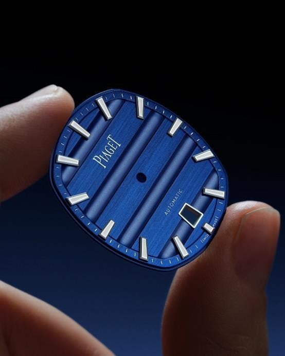 這次在《Watches and Wonders鐘錶與奇蹟》錶展上,伯爵延續了Polo79系列在全球的熱烈迴響,帶來驚喜新作!這次首度在當代系列中運用方鈉石作為錶盤,這種深邃又獨特的紋理,配上橫向圓模條紋,讓Polo79系列整個質感大升級,帶有幾何建築美學的輪廓超迷人!