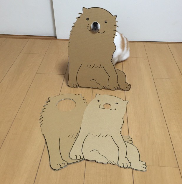 雖然Semba的創意受到了那麼多人的注意,不過她還是謙虛的說:「真正的主角其實是這隻乖巧不會亂動的狗啦,我的紙板只是輔助而已。」
