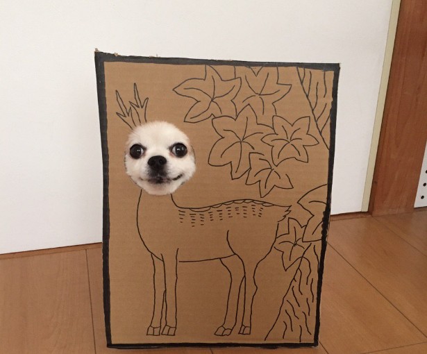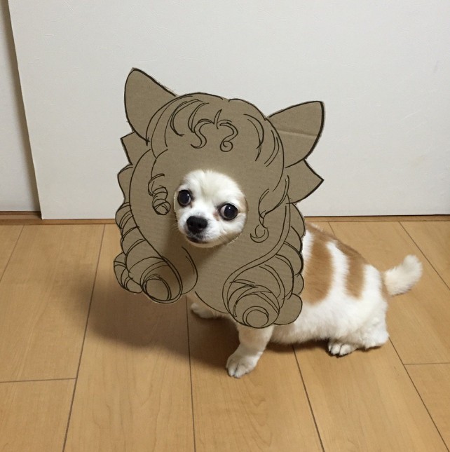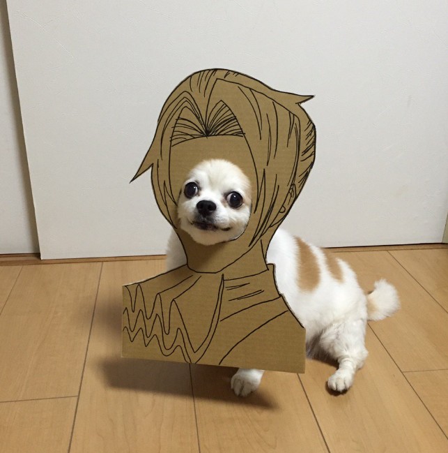 在日本有位主人Semba,平時的興趣就是在紙板上畫動漫人物並挖洞,讓家裡的吉娃娃Mametaro穿戴起來,1:1的大小看起超級無違和啊!