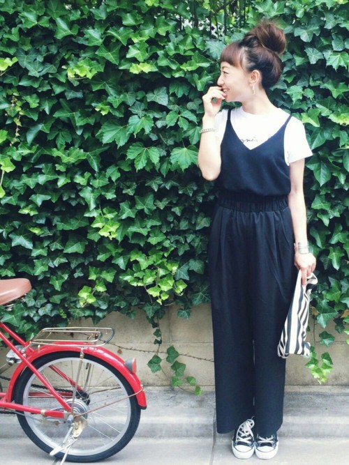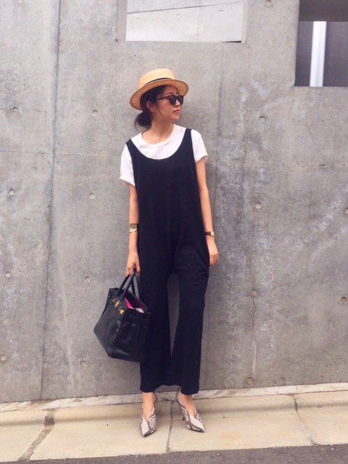連身褲在今年真的是大勢!如果你有無袖或是細肩帶的連身褲,可以跟白T做搭配,不過整體只有黑白兩色的確很單調,可以穿金屬色的尖頭鞋或涼鞋,並搭配搶眼的飾品,就能平衡整體穿搭。