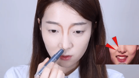Step3. 為了呈現娜璉挺拔的鼻樑,Kimdax在鼻樑兩側眉頭處使用了Pony與Etude House合作的修容魔法棒!