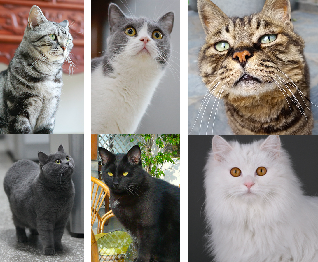 位居北京的「觀復博物館」收藏上百件價值連城的古董寶物,但其中最引人注目的反而是六隻貓館長:麻條條(左上)、雲朵朵(中上)、花肥肥(右上)、藍毛毛(左下)、黑包包(中下)、黃槍槍(右下)。