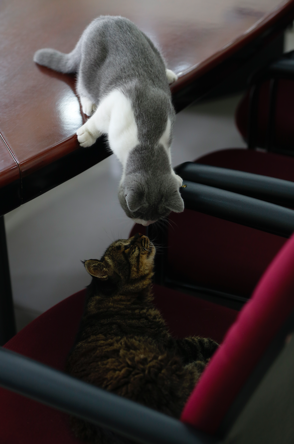 館長還因為貓咪太可愛的關係,特地下令禁止員工上班時間逗貓,不過又有誰能抗拒這些傲嬌、又超會撒嬌的貓咪呢?鏟屎官們還是竭盡所能地在物質上盡量滿足牠們,罐罐就別說了,夏天有員工的風扇吹、冬天有暖爐可烘,有時員工的椅子被貓咪佔據了,還寧願自己站著上班、也不願趕走貓咪呢!