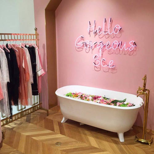 整棟建築都保有STYLENANDA粉嫩的色調,再加入飯店的元素,像是飯店每間房都會有的泡澡浴缸,並在裡頭撒上鮮豔的花朵,讓人真的只想喊一聲「Gorgeous」,然後脫衣泡澡當貴婦去(?)。
