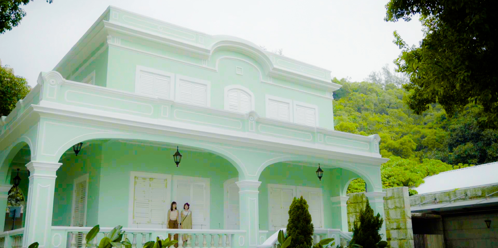 位在氹仔的龍環葡韻住宅式博物館,是由5棟近百年的葡式別墅組成。建築外觀以淡綠色勾勒著白邊,非常高雅迷人。博物館門口鋪設著碎石子路,李懿、曾智希不論是站在窗邊,或並肩坐於涼椅上,吹著涼風,隨便拍隨便美。