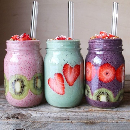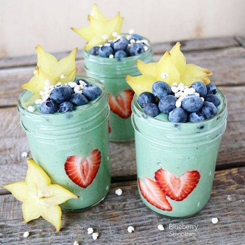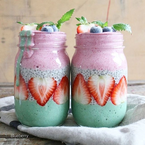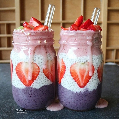 水果冰沙原本是很常見的東西,不過在Instagram上就有一個經常製作養生與水果食品的帳號blueberrysmoothies,居然想到把冰沙放到玻璃罐當中,再加入新鮮水果,疊成了照片中超美麗可口的樣子!(讓人想到中東的玻璃瓶沙)