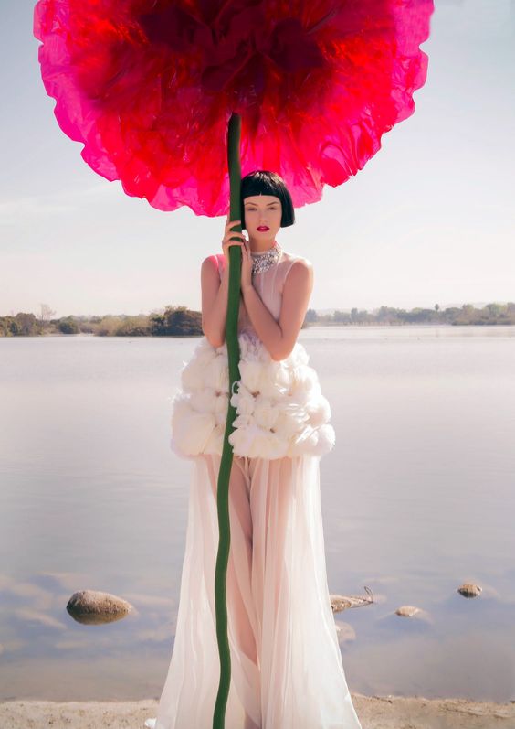 站在巨無霸紙花旁,一秒變身待嫁的拇指姑娘。