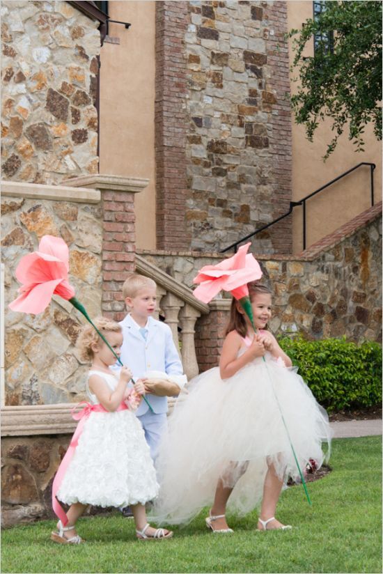 拿著巨大紙花的小花童簡直就像在花間嬉戲的小精靈!