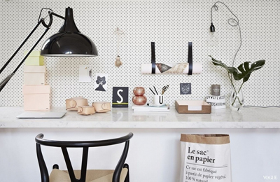 如果你的家夠大,或是有客房的話麻煩設定成你的「工作領域」,空間不夠的話就選擇一個特定的角落,可能是飯廳或是客廳—千萬別設在房間(電腦有可能會影響睡眠)。用書櫃、屏風或是特定的傢俱隔出空間,成為一個比較獨立的區塊;如果是以餐桌為工作平台時,選幾個文件架或書架擺放你的檔案,並利用它們隔出一個角落-方便收拾和整理,可以在工作桌和餐桌切換。