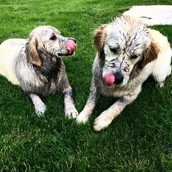 因為Georgia和BooBoo很常一起在外頭鬼混、奔跑,所以回到家常常都會變成一灘爛泥躺在家裡的各個地方,像是沙發上......