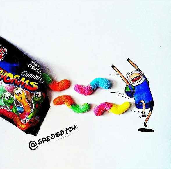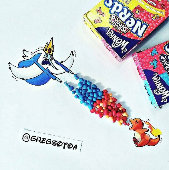 只要有創意,任何東西都可以成為具有自我風格的藝術品,不過大家曾想過拿糖果來入畫嗎?國外網友Greg Soto就利用了糖果繽紛的顏色與動畫做搭配,讓這些動畫的人物更繽紛,而且看起來也更可口喔~