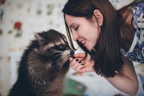俄羅斯的這位Anna,平常就很喜歡小動物,家裡有養一隻狗和貓咪,會養浣熊的原因是看了美國電影《星際異攻隊》(Guardians of the Galaxy)後,因為很喜歡裡面的浣熊角色,就下定決心要養一隻浣熊,並取名為Fedor。