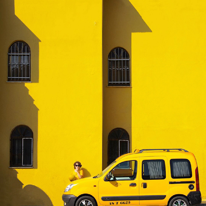 雖然是以黃色為主題的照片,但是因為有窗戶的暗部,計程車黑色的輪廓,加上自然形成的陰影,這張照片看起來不僅有層次,還特別有意思。
