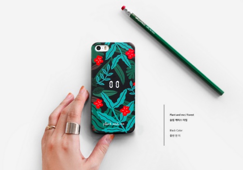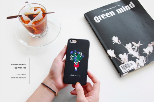 延續森林系款後,是「Plant And Me」的少女情懷,每個女生大概都曾在內心暗暗期待從喜歡的人手中收到花吧!在黑色基底的手機殼,即使看不到捧著大束花的女孩,還是可以感覺到幸福的氛圍四溢。