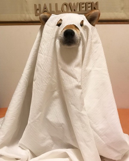 除了甜甜圈,為了即將到來的萬聖節,Marron的主人當然也準備了超應景的服裝!(嗯...這會不會太簡陋了啊?另一隻眼睛好像看不到耶~)