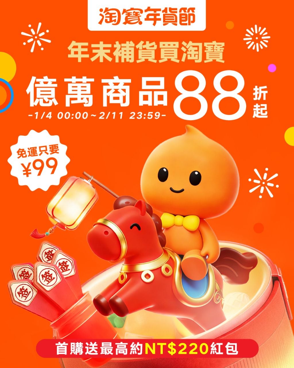 2026淘寶年貨節開跑!抽Apple Watch再享全站88折,馬年開運紅包與佈置清單一次看