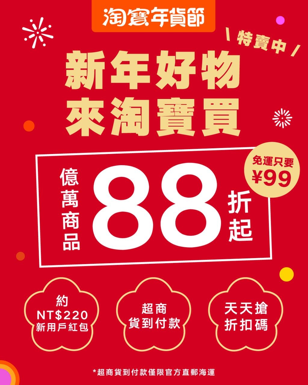 農曆春節進入倒數計時,是否已經開始煩惱年節禮物和家裡的佈置了呢?2026年「淘寶年貨節」正式登場啦!這次不僅祭出全站官方立減88折起的超狂優惠,還有機會把Apple Watch帶回家。不管是想要把家裡佈置得喜氣洋洋,還是要準備讓長輩笑得合不攏嘴的伴手禮,淘寶都幫大家準備好最強清單了。重點是,滿人民幣99元就能免運,還支援7-ELEVEN貨到付款,讓妳輕鬆滑手機就能搞定過年大小事!