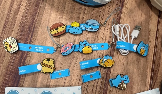 此次「貓貓蟲咖波」聯名週邊,共推66款商品,其中必收的絕對是「咖波扣扣仔組合包」,以風靡韓系穿搭的鞋扣為靈感,搭配各種食物造型的貓貓蟲咖波、狗狗圖樣,5月1日起搶先於門市以89元當筆加價購,可隨機獲得鞋帶扣、集線器、吊飾等配件1入及隨機2入扣扣仔;扣扣仔全套16款隨機出貨,自由搭配出喜歡的模樣太療癒!