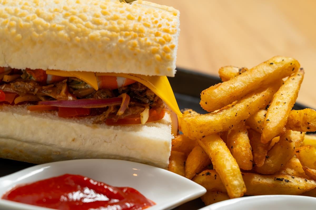 慢烤手撕豬鮮蝦起司軟法堡附松露薯條