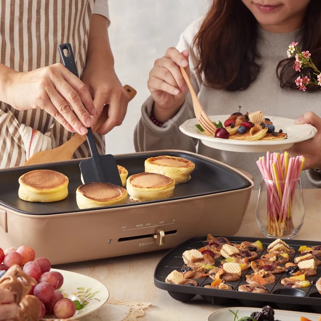 BRUNO的「電烤盤」應該是大家耳熟能詳的家電了吧?它附兩種烤盤,不論煎餃、牛排或燉飯都難不倒,還可以與家人朋友一起製作章魚燒、包餡肉丸。而歡聚款還內附蒸架鐵網,也能加購鴛鴦深鍋,煎煮炒炸燉煲一機搞定~如果朋友喬遷聚會送一台這個絕對很體面!(記得看風格搭不搭~)
