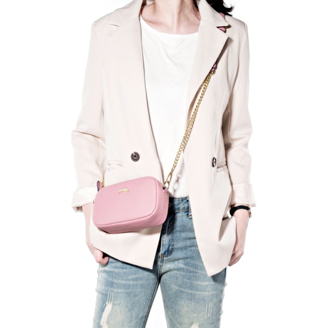 個性風女孩大推這款!PEPPER’S家的粉紅斜背小包,採用荔枝紋牛皮材質打造而成,柔軟的皮革加上圓弧線的包型輪廓,俐落又自帶小女人溫柔感,同時附上金鍊長背帶,不只情人節約會,任何場合都很實搭。