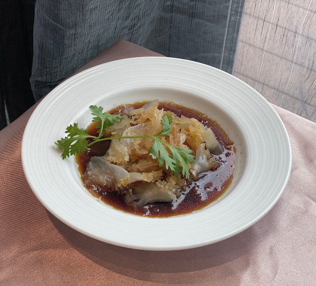 夏之旬味5款佳餚推薦,首先以「山泉鱸魚燒豆腐」揭開美味序曲,這道老上海功夫菜選用本地生產的山泉鱸魚,肉質軟嫩富彈性,以功夫火侯燒燜處理,與有機板豆腐、春筍、香菇燜燒收汁,肉質鮮嫩、醬汁入味!