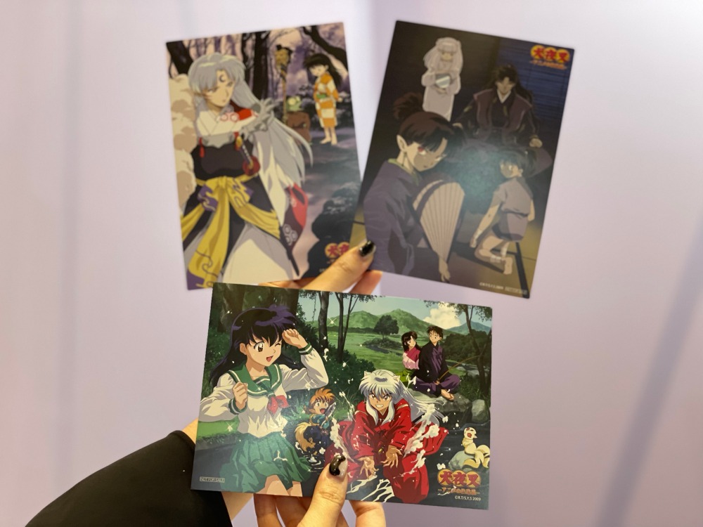 這次當然也帶來多款週邊,還有「日本入場特典」,觀展即可獲得「動畫圖卡」,套票贈送的「犬夜叉迷你人形立牌」為全新款式(與台北場不同),登場角色為犬夜叉&阿籬、犬夜叉&殺生丸、珊瑚&彌勒,粉絲必收藏!