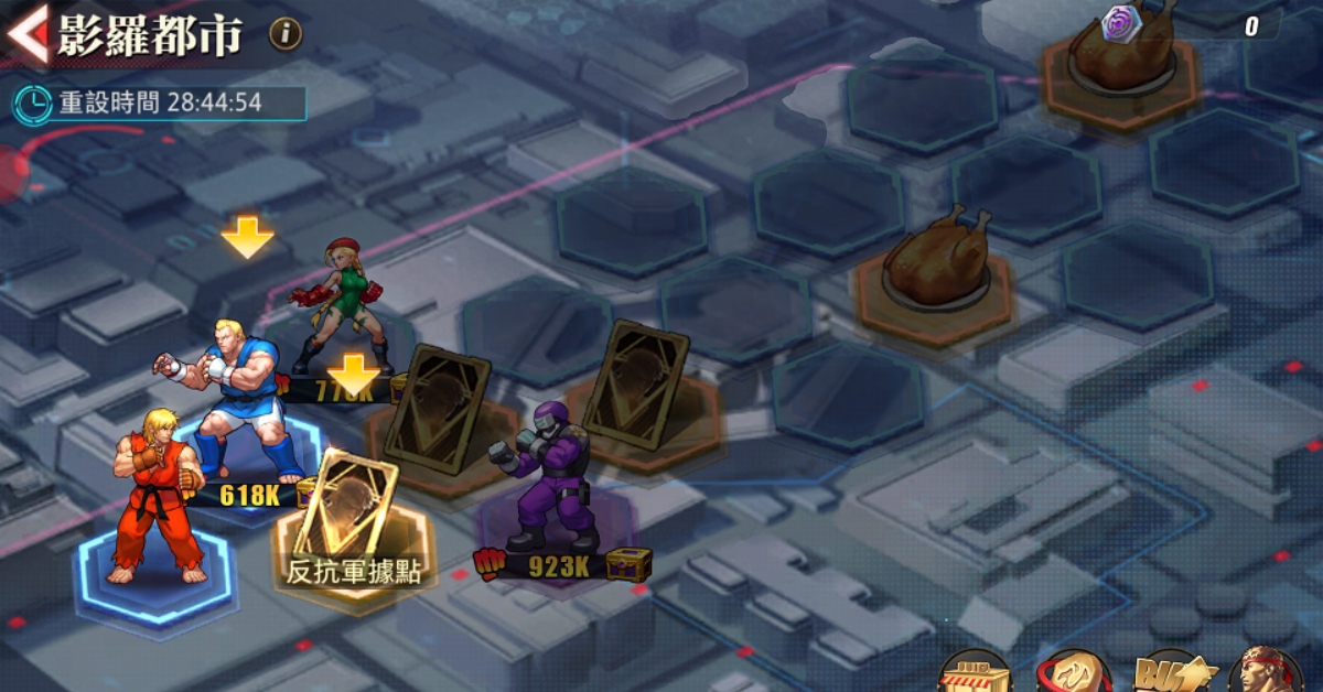 影羅都市副本採用Roguelike玩法,玩家在通關過程中血量不重置,需要用一條命走到最後,獲得寶箱獎勵。當然關卡中會設置反抗軍據點,玩家可招募強力格鬥家協助完成挑戰,同時也會設置補給點恢復部分血量,玩家完成小關卡會獲得都市線報獎勵,可在商店內兌換部分道具,也會獲得戰場Buff,在後續挑戰中能更輕鬆應對。