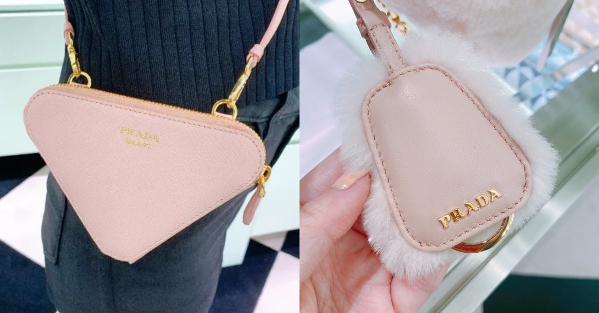 PRADA近年在各種單品上大玩品牌經典的「三角標」,除此之外,更直接將三角標打造成了「三角包」,近期推出的秋冬節慶系列中,迷你三角包直接粉色皮草加身直接爆擊少女心,毛毛包的另一邊搭配的是粉色牛皮材質設計,毛毛包上點綴的是搪瓷金屬三角形標誌,另一面則是PRADA品牌Logo字樣,兩個包款可以隨意合併或拆開使用,可愛又很有搭配性。