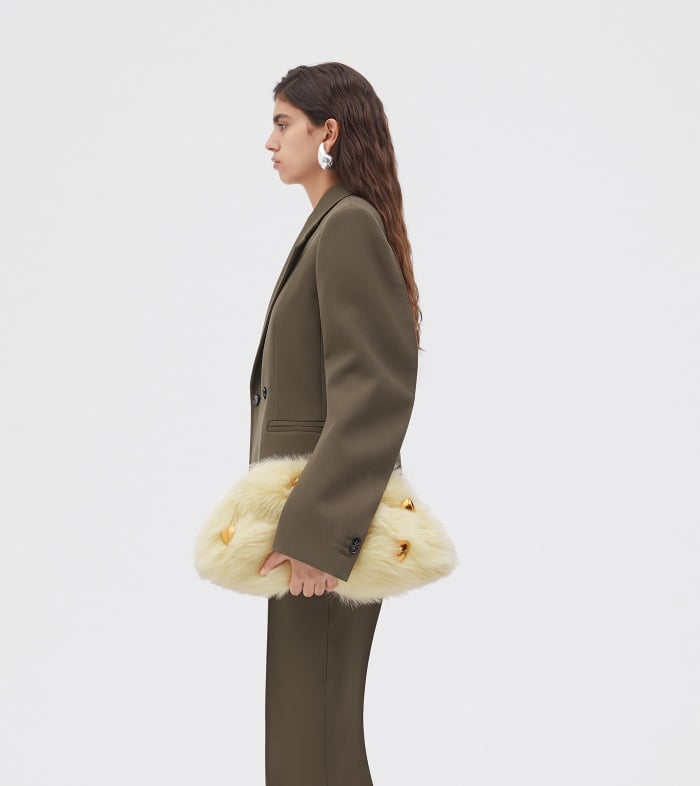 BOTTEGA VENETA在今年冬季將經典包款都換上冬季專屬的綿密剪羊毛,在熱賣的Jodie及Pouch包款上都加入了或長或短的蓬鬆可愛剪羊毛質感,真的是可愛到讓人想直接抱著走,其中Jodie包標誌性的扭結設計,改以剪羊毛質感,而Pouch系列則是以混融剪羊毛質材及金屬裝飾設計,視覺與手感都超~好。