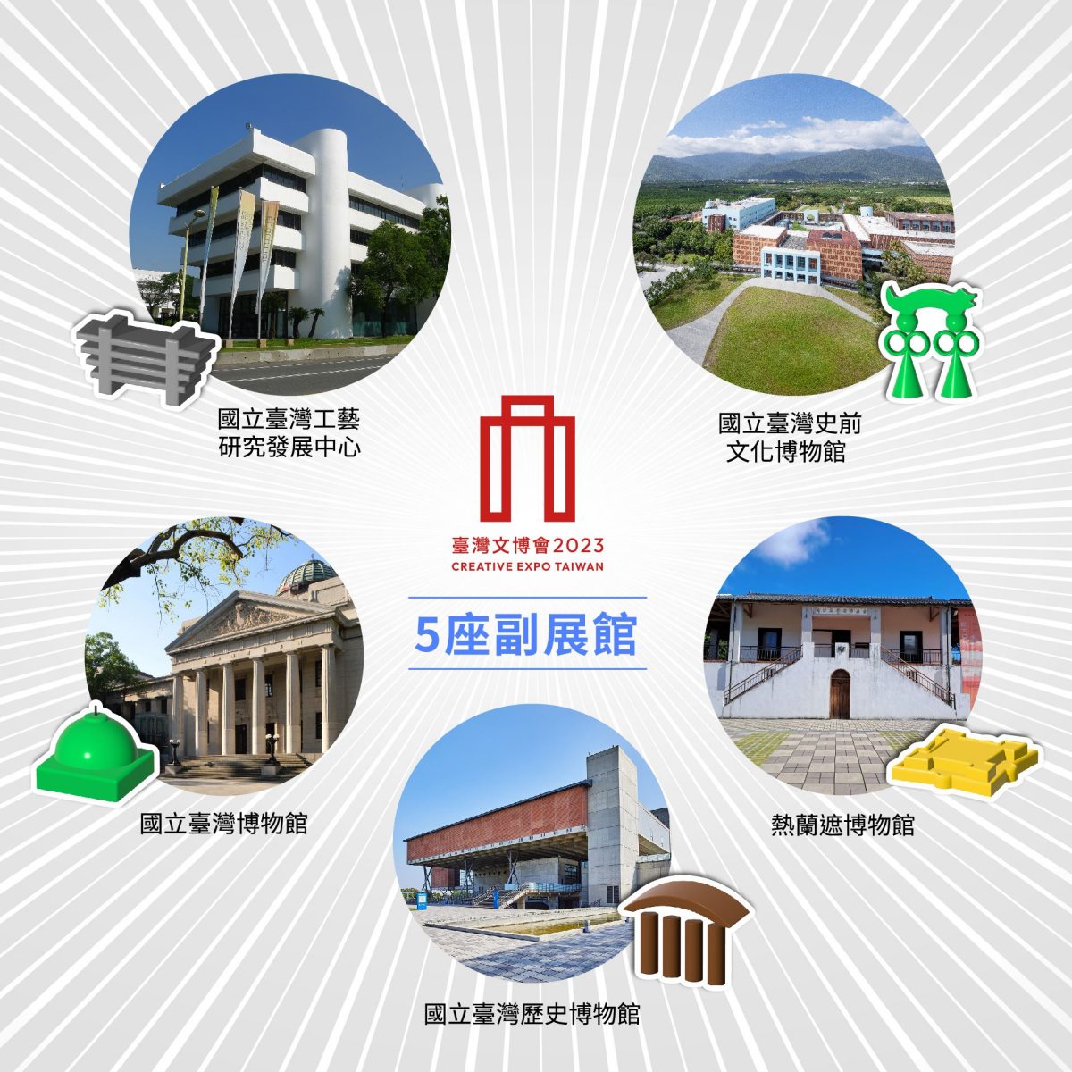 除了5大主展區外,今年更跨出單一縣市,邀集國立臺灣博物館、國立臺灣工藝研究發展中心、熱蘭遮博物館、國立臺灣歷史博物館、國立臺灣史前文化博物館等5個副展館在全國北中南東共同響應,即日起5個博物館的文博會副展館陸續開展!讓妞妞們可以在文博會開始前,可以先去看看各種主題的臺灣歷史喔~