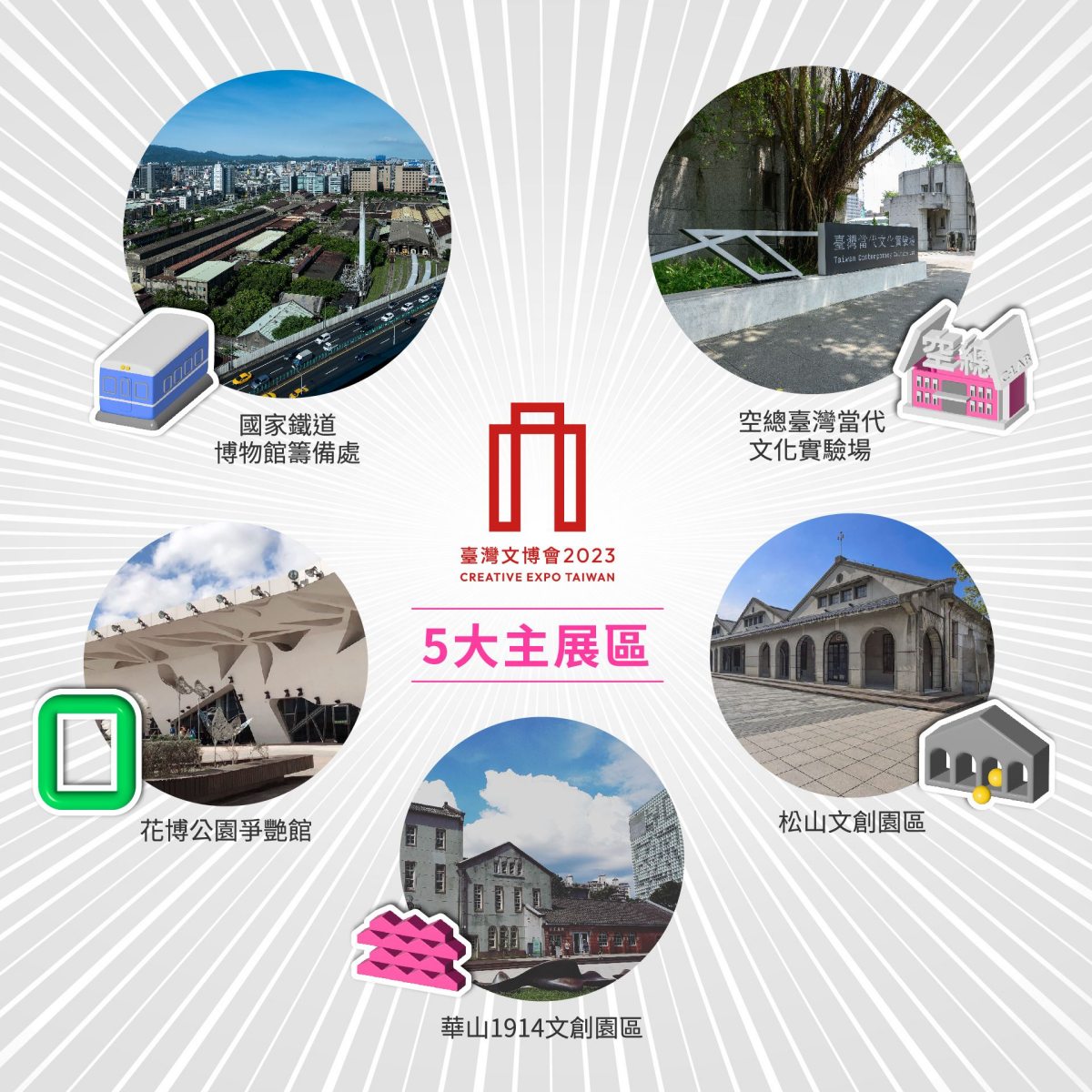 重返臺北的臺灣文博會,除原有花博爭艷館、華山創意產業園區、松菸文創園區,將首次擴大主展館至空總臺灣當代文化實驗場、國家鐵道博物館籌備處等共5大文化場域,開展文化策展、文創品牌、IP授權及文化展演的繽紛紮實內容,打造跨距最遠、內容最廣、展演最多、參展最踴躍的大型文化創意博覽會。