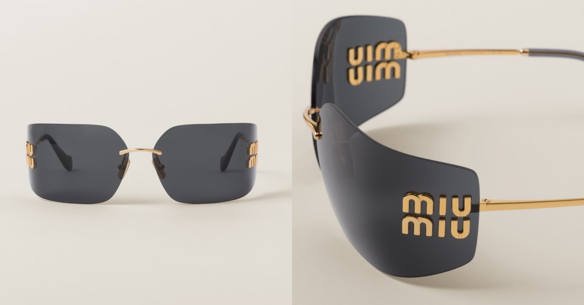 MIUMIU這款「護目鏡式」的Runway太陽眼鏡叛逆可愛,採用超輕無框款式弧形鏡片,立體的MIUMIU LOGO彰顯品牌大膽又創新的精神,圓弧形狀的特殊鏡片向上盤起時也有種戴上髮飾的造型感,在不經意間彰顯時髦態度。
