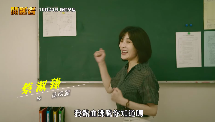 「為什麼男人在工作上表現優異,就是會被稱讚,但女人能幹卻是要被檢討」今年以《村里來了個暴走女外科》首度入圍金鐘戲劇女主角的蔡淑臻,在《開創者》飾演是温昇豪手下第一大將「吳明麗」,劇中幹練堅毅的她,無論是日文翻譯、登報找業務員、訂製員工制服、管理公司章程等,各種瑣碎的工作通通難不倒吳明麗,妞妞們也能在戲中看見蔡淑臻如何面對舊時代女性的束縛,在人生中找到自我價值、成為自身命運的開創者。