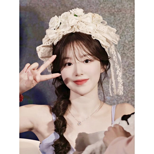 舒華當天除了戴上動物、卡通頭飾超萌寵粉,還挑戰臉鏈、蕾絲蝴蝶結,其中「浪漫純白的頭紗」更是讓他加滿仙氣,夢幻到不行的造型,也被韓國討論區受封是「史上最清純」!