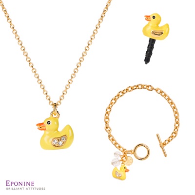 讓黃色小鴨療癒妳疲憊的心,〈回到最初〉系列,以黃色小鴨作為主軸,以項鍊妝點潔白頸間,精巧繫住纖細手鍊,以及小巧防塵塞保護手機。在純真小鴨面前,卸下妳外在所有防備,作最真實的自己,守護妳心中最柔軟的領域,重拾最純粹的燦爛笑容。