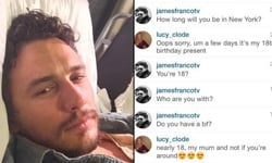 前陣子才被爆出是琳賽蘿涵砲友名單之一的詹姆斯法蘭柯(James Franco)竟然也約女網友開房間!17歲的Lucy在自己的Instagram上Po出看完詹姆斯法蘭柯在百老匯劇院的表演並標註他之後,就收到了詹姆斯法蘭科的私訊問她「要在紐約待多久」以及「有沒有男朋友」等問題,最後就約了該名女網友一起去開房間。