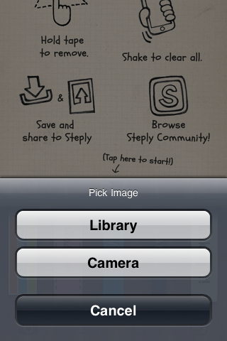 猜得沒錯,點按左下方的相機圖示,就可以從Library(相簿)裡挑張圖片,或用Camera現拍一張照來玩囉!