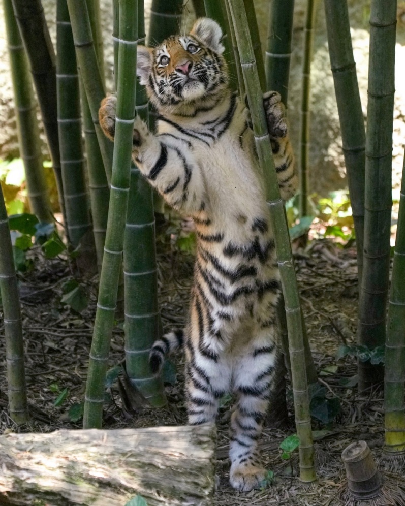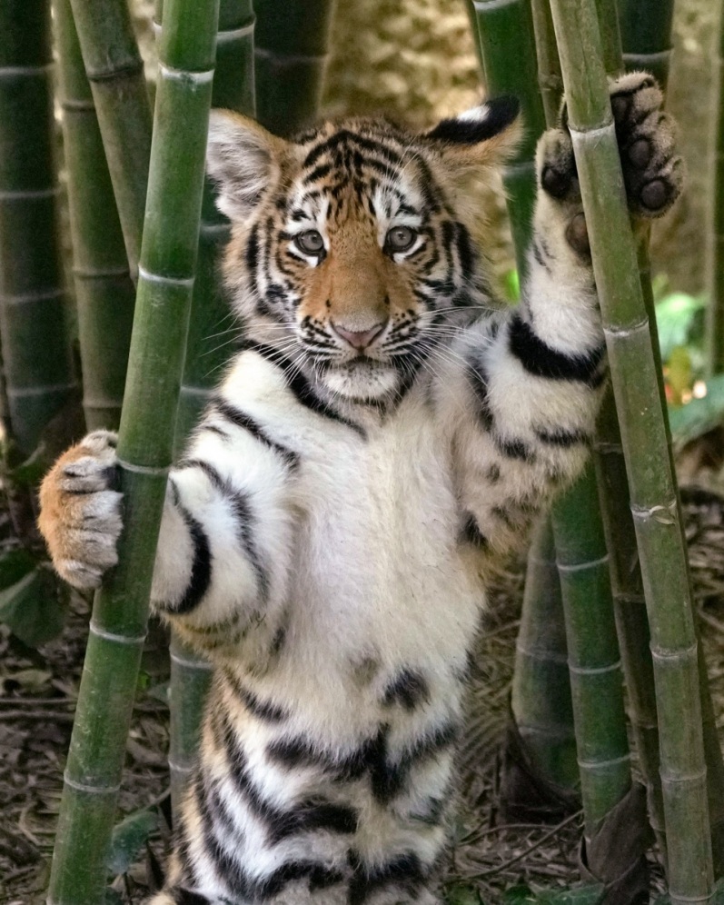 他的照片也不是隨便拍拍而已,每一張照片裡的大貓感覺都在訴說著什麼故事,像是上圖中手手扶著竹子的老虎,看似犀利兇猛的外表卻配上嬌羞靦腆的眼神,這個反差萌直接融化一堆網友,還說:「感覺是一隻有故事的老虎」、「這是迪士尼公主準備要唱歌的樣子吧?」(笑)