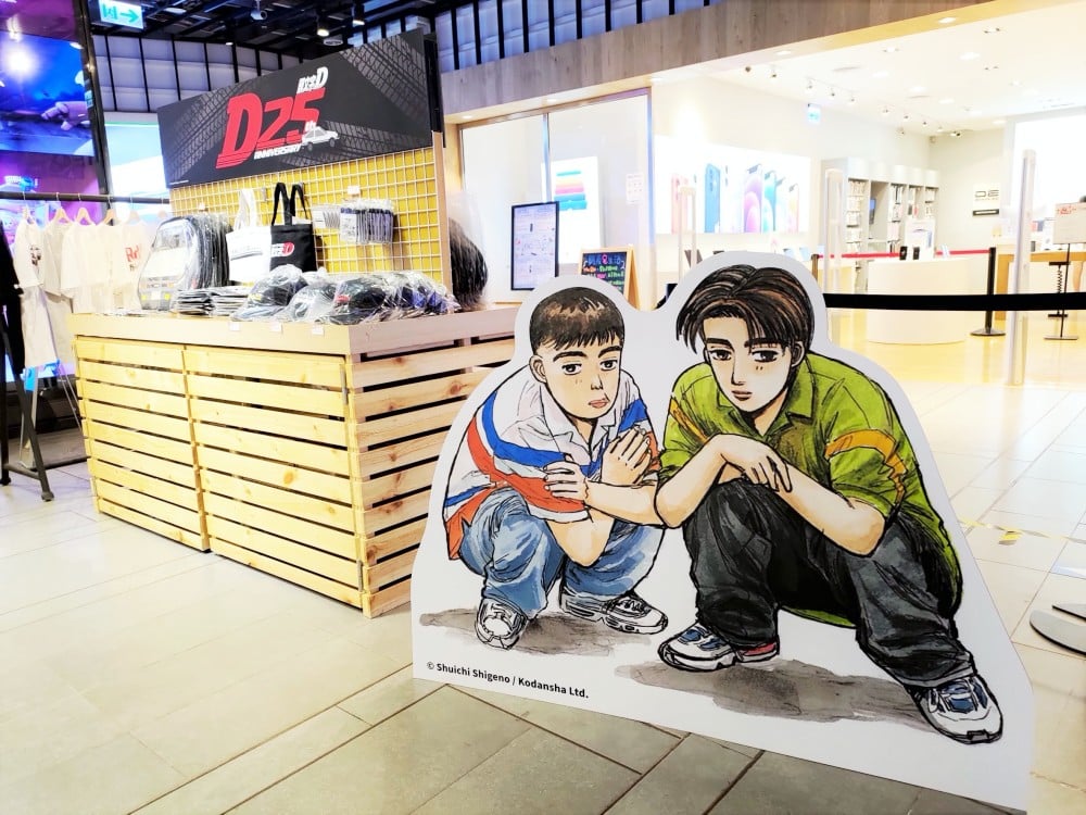 由FANFANS粉粉主辦的《頭文字D》主題店位於台北三創1樓,帶來漫畫經典場景背景牆,藤原拓海也同台登場,店內牆面同步展示主角介紹與AE86、RX-7等車型,秒勾起粉絲對「秋名山競速」的回憶。