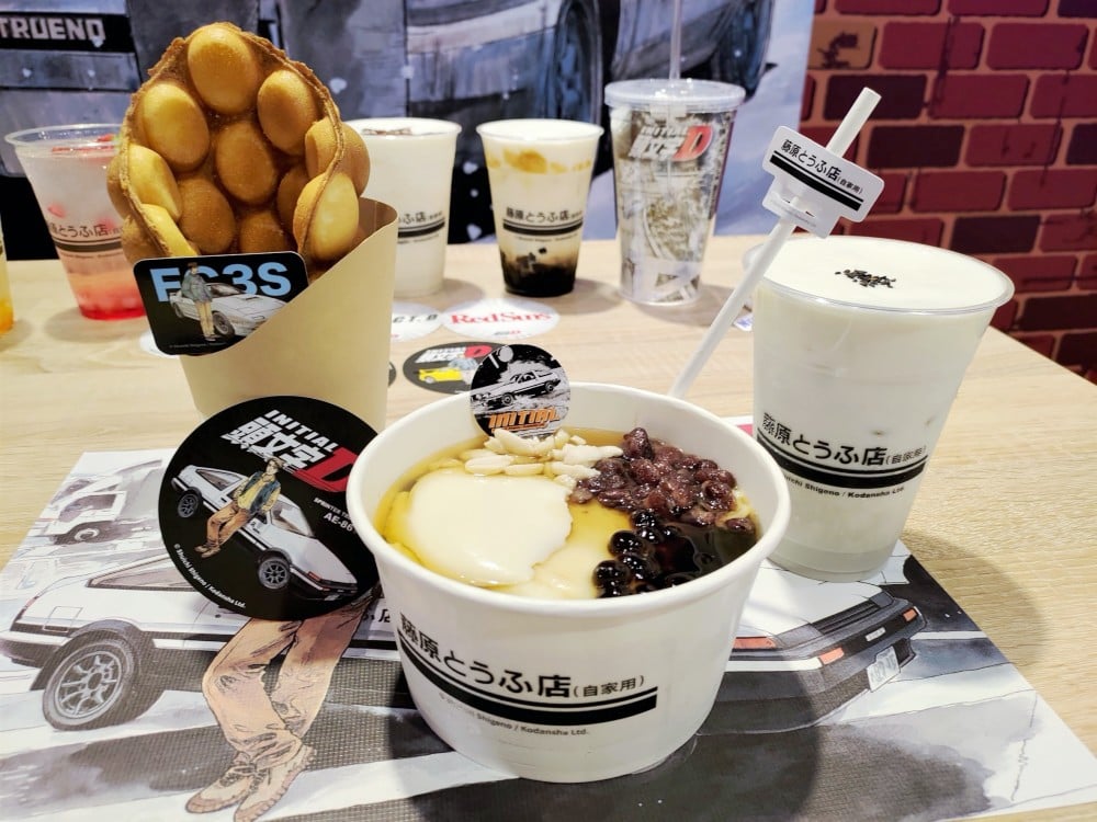 主題店同時結合餐飲,帶來藤原豆腐店豆花、杏仁豆腐、雞蛋仔、珍珠聖代、培根豆腐蛋沙拉貝果、烤雞腿鮮蔬沙拉等輕食。餐點皆以專屬主題插卡裝飾,並首創「豆花得來速」服務,致電預約餐點與取餐時間,不需下車即可在指定餐點結帳取餐!