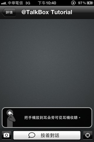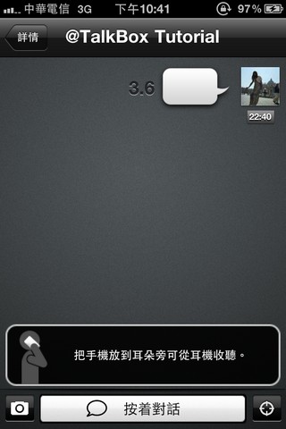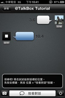 小技巧:當你已經太久沒有開啟TalkBox,累積過多的訊息時,建議從外面點選播放鍵,才不會一邊下載訊息,一邊聽(內部聽訊息是會先播放最新下載好的訊息,造成跳訊息的情形),從外面播放會從沒有聽過的訊息開始播。