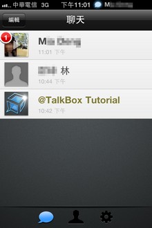 聊完天了嗎??這些訊息都會存在聊天室中,再去看看哪些朋友也有在用TalkBox吧!